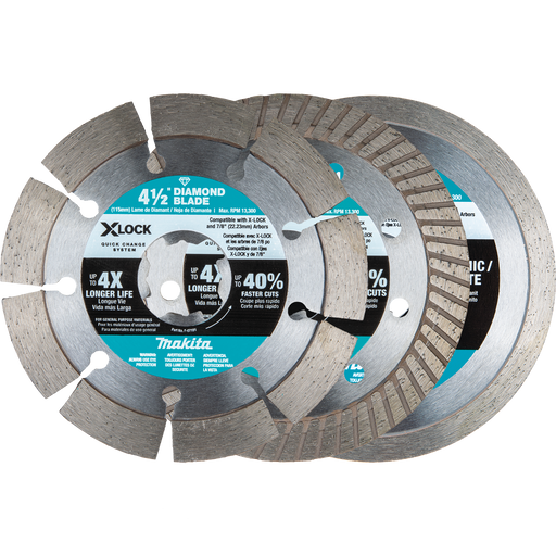 Makita (E-12647) X-LOCK 4-1/2" Diamond Blade Variety Pack for Masonry Cutting, 3/pc