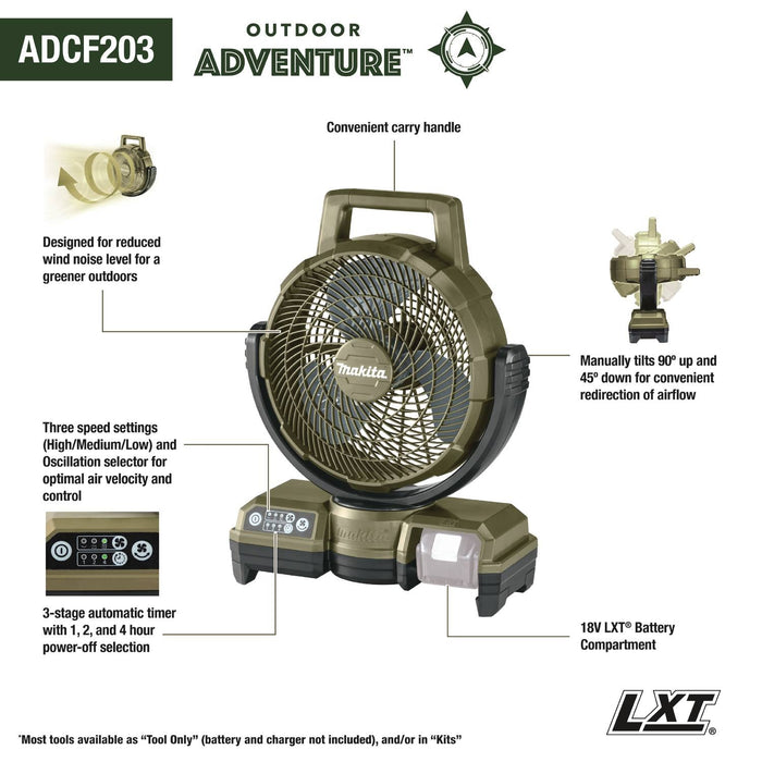 Makita (ADCF203Z) Outdoor Adventure™ 18V LXT® Cordless/Corded 9?1/4" Fan (Tool Only)