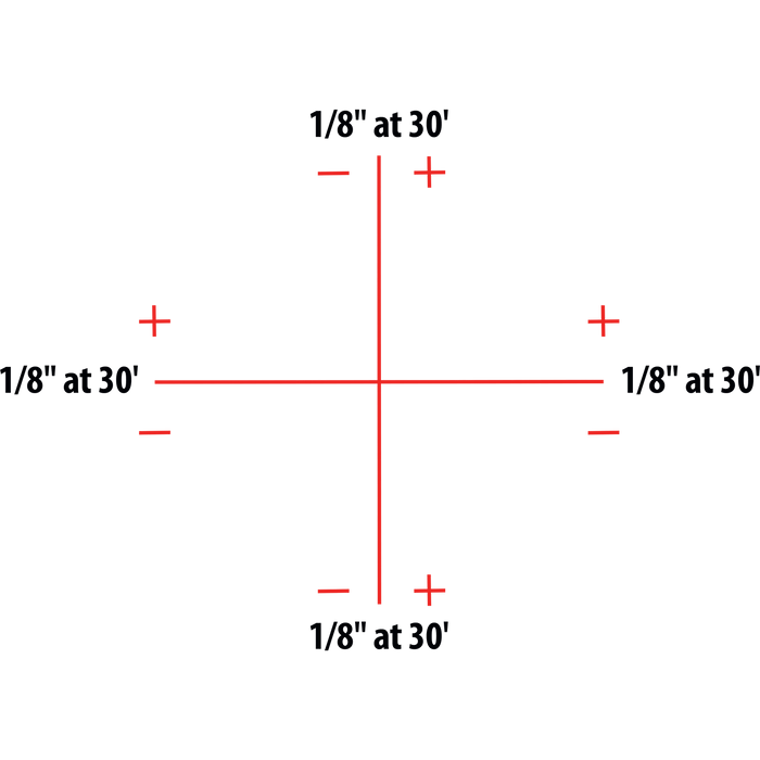 • Accuracy - horizontal/vertical lines (+/- 1/8” @ 30’)