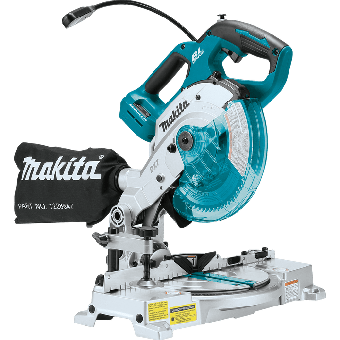 Makita offers a portable cutting solution with the 18V LXT® Lithium-Ion Brushless 6-1/2" Compact Dual-Bevel Compound Miter Saw with Laser (tool only). The efficient BL™ Brushless Motor is engineered for up to 50% longer run time, increased power and speed, and longer tool life with no brushes to replace. The XSL05Z combines performance and portability: it weighs only 14.6 lbs. with battery (sold separately), and is equipped with Automatic Speed Change™ technology which adjusts cutting speed and torque for optimum performance under load. This compact cordless miter saw is engineered for cutting a variety of materials including wood and aluminum extrusion (aluminum blade and cutting lubricant sold separately). It is ideal for room-to-room applications including baseboard and ceiling trim. It has a cutting capacity of Cutting capacity of 1-13/16" x 3-5/8" at 90° and 1-13/16" x 2-9/16" at 45°. It miters 0-52° left and right; bevels 0-46° left and right, with miter detents at: 0°, 15°, 22.5°, 30° and 45° left and right. Added features include a built-in L.E.D. light, and a see-through blade guard system for greater visibility of blade and line of cut. It has a direct-drive gear system so there’s no belt to slip or replace.